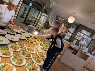 食後にはホテルから手作りケーキのプレゼントと子ども食堂を運営する上平さんからのお祝い。上平さんは自宅を改装して子ども食堂を始めて11年目だそうです。